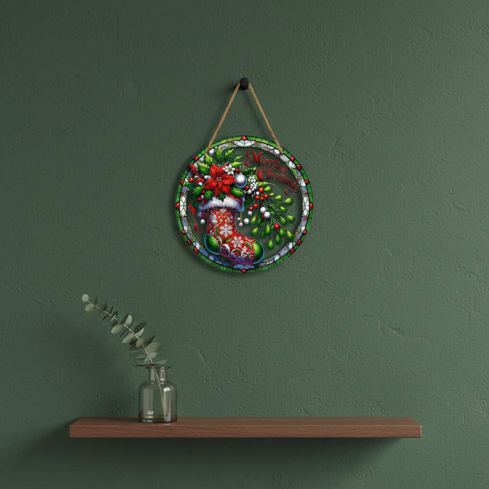 Acrylic Suncatcher Disc - Festive Xmas Stocking Suncatcher