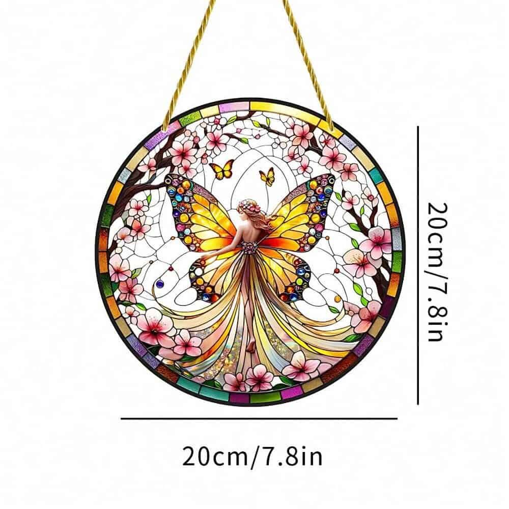Acrylic Suncatcher Disc – Golden Butterfly Fairy (Large)