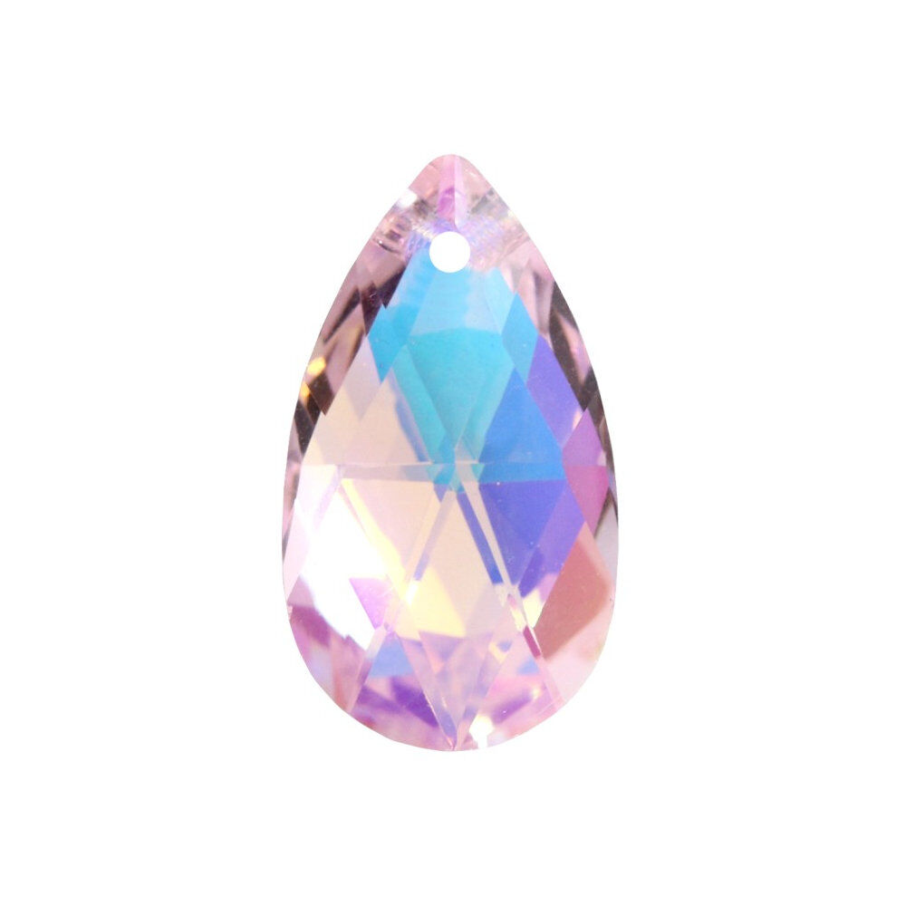 Add soft blush tones and gentle sparkle to your designs with this Aurea Crystal Pear Pendant in Light Rose AB. Featuring a beautifully faceted pear shape and a delicate light pink base with an Aurora Borealis coating, this pendant reflects subtle rainbow hues that add depth and elegance to jewellery designs.