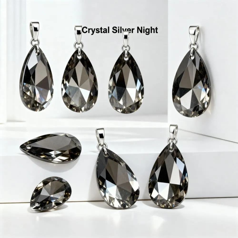 Add elegant depth and subtle sparkle to your designs with this Aurea Crystal Pear Pendant in Crystal Silver Night. Featuring a beautifully faceted pear shape and a sophisticated silver-grey finish with soft reflective highlights, this pendant is ideal for creating refined earrings, delicate necklaces, and timeless jewellery designs.