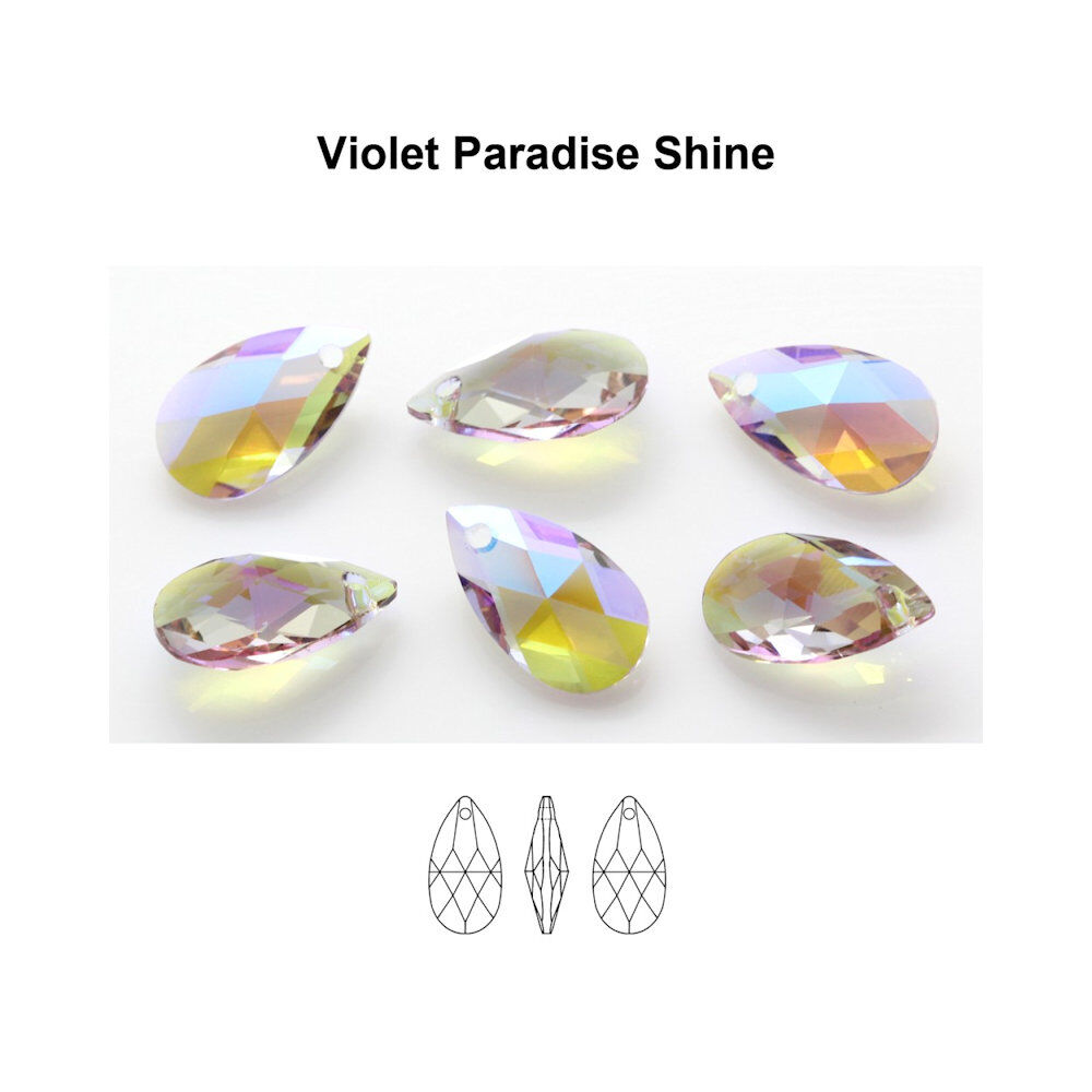 Add luminous colour and refined sparkle to your designs with this Aurea Crystal Pear Pendant in Violet Paradise Shine. Featuring a beautifully faceted pear shape and a soft violet coating with subtle pastel rainbow reflections, this pendant is perfect for creating elegant earrings, delicate necklaces, and refined jewellery designs.