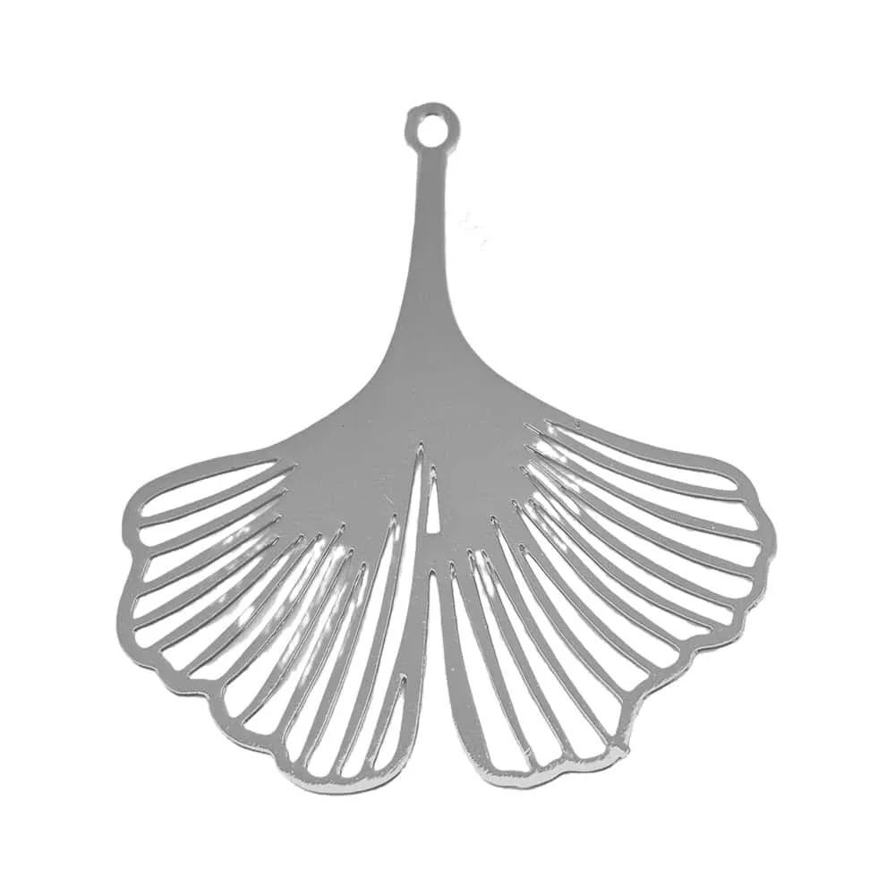 Bohemian Ginkgo Leaf Charm – Silver Plated Brass 32x28mm