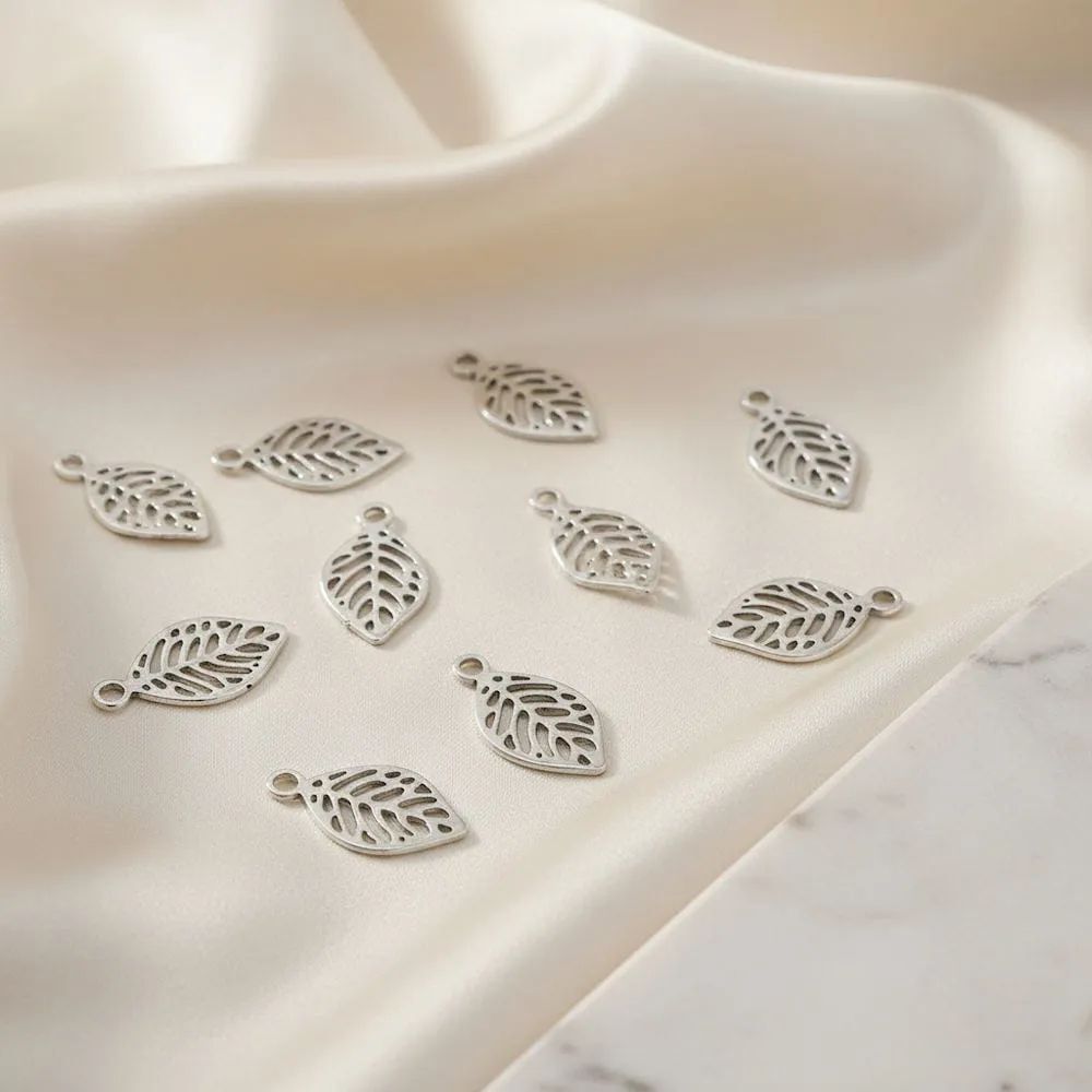 Add a delicate touch to your jewellery creations with these Bohemian Leaf Charms in Silver. Crafted from nickel-free brass, these fine filigree charms are perfect for earrings, bracelets, or necklaces. The elegant cut-out leaf design shines beautifully in silver plating, giving your handmade jewellery a modern and stylish finish.