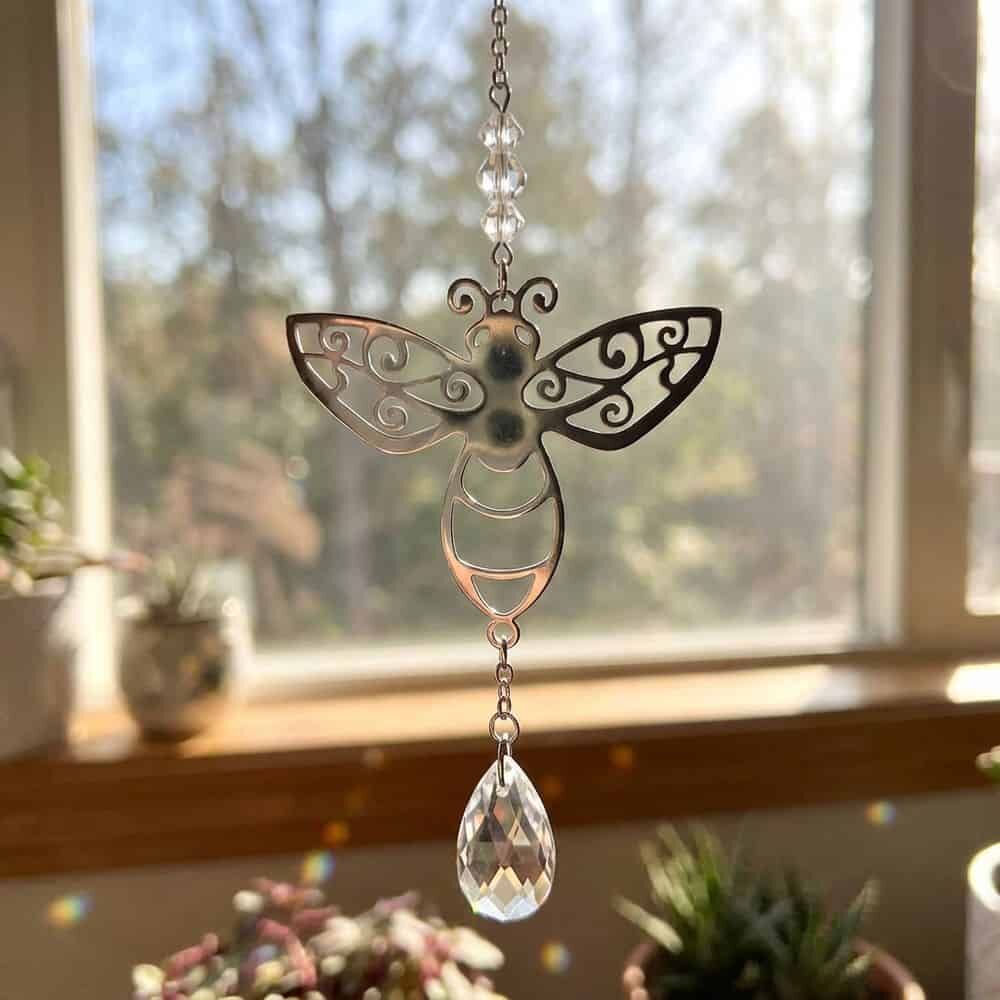 A shiny rhodium-plated craft charm measures approximately 43mm. It has a ring at the top and the base for stringing and is ideal for adding to your suncatcher creations.