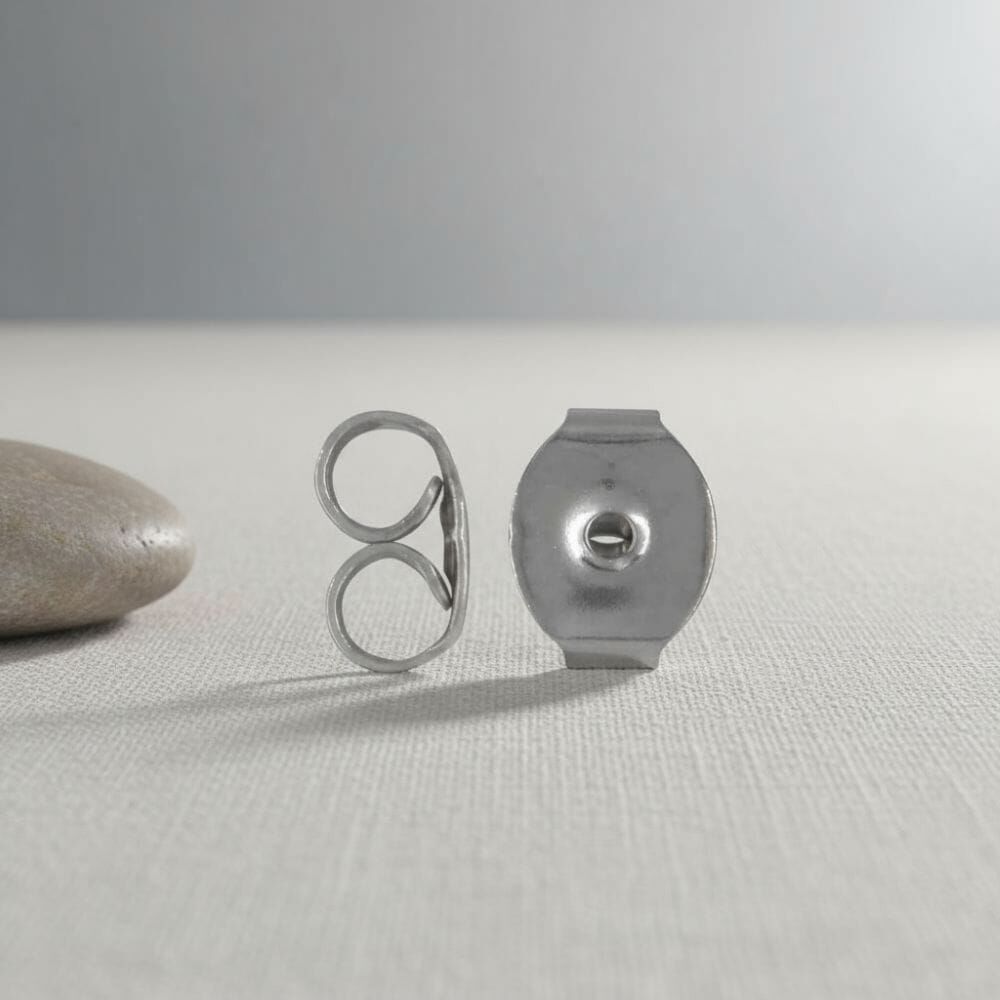 Secure your stud earrings with premium 316 Grade Surgical Stainless Steel Butterfly Earring Clutches. These high-quality backs provide a firm, comfortable hold while being safe for sensitive ears.