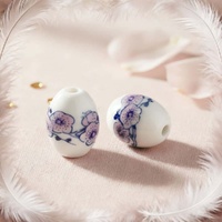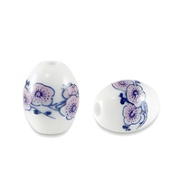 Ceramic Oval Beads – Purple Blossom Flower bring delicate floral elegance to your jewellery designs. These glossy white ceramic beads feature soft purple blossom detailing with blue accents, creating a graceful hand-painted look that complements a wide range of styles.