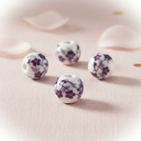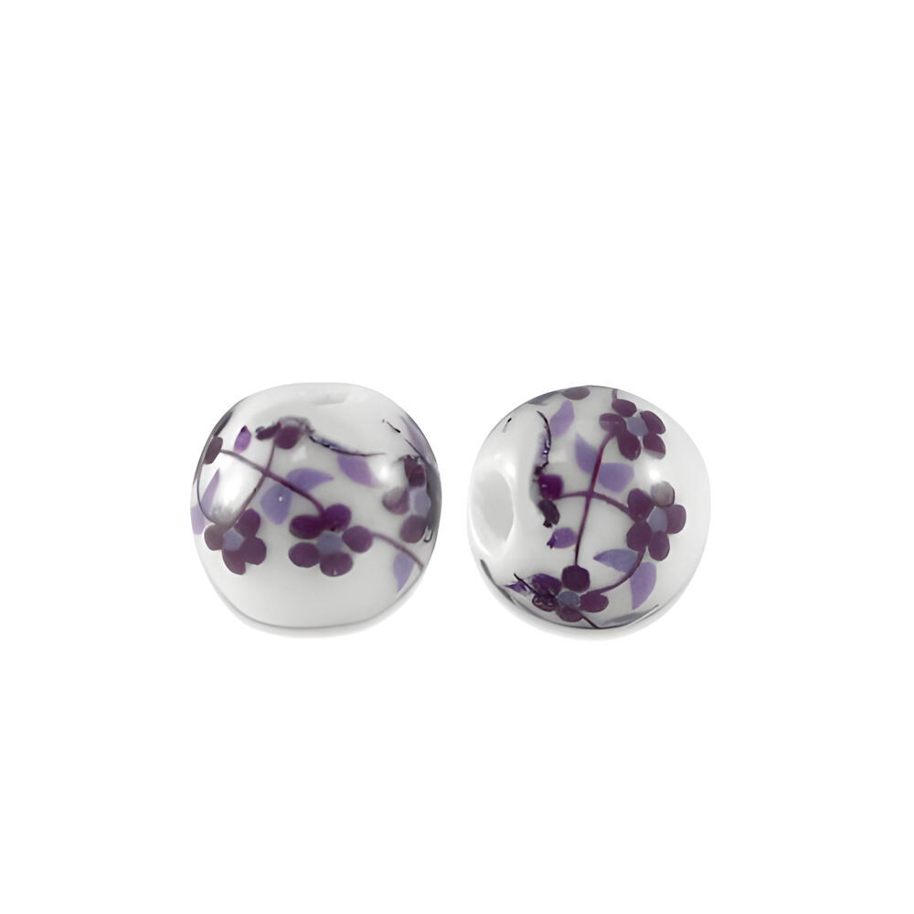 Ceramic Round Beads – White Lotus Purple feature a graceful floral design in soft purple tones on a glossy white ceramic base. Their delicate detailing and smooth glazed finish make them a lovely choice for elegant, handcrafted jewellery pieces.