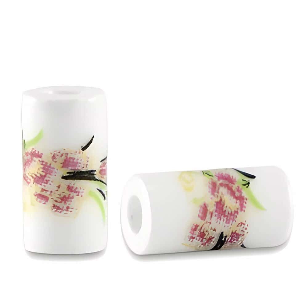 Ceramic Tube Beads – Pink Flower bring soft, handcrafted elegance to your jewellery designs. These white ceramic beads feature a delicate pink floral motif with light green and gold detailing, creating a refined, hand-painted look that adds charm to any creation.