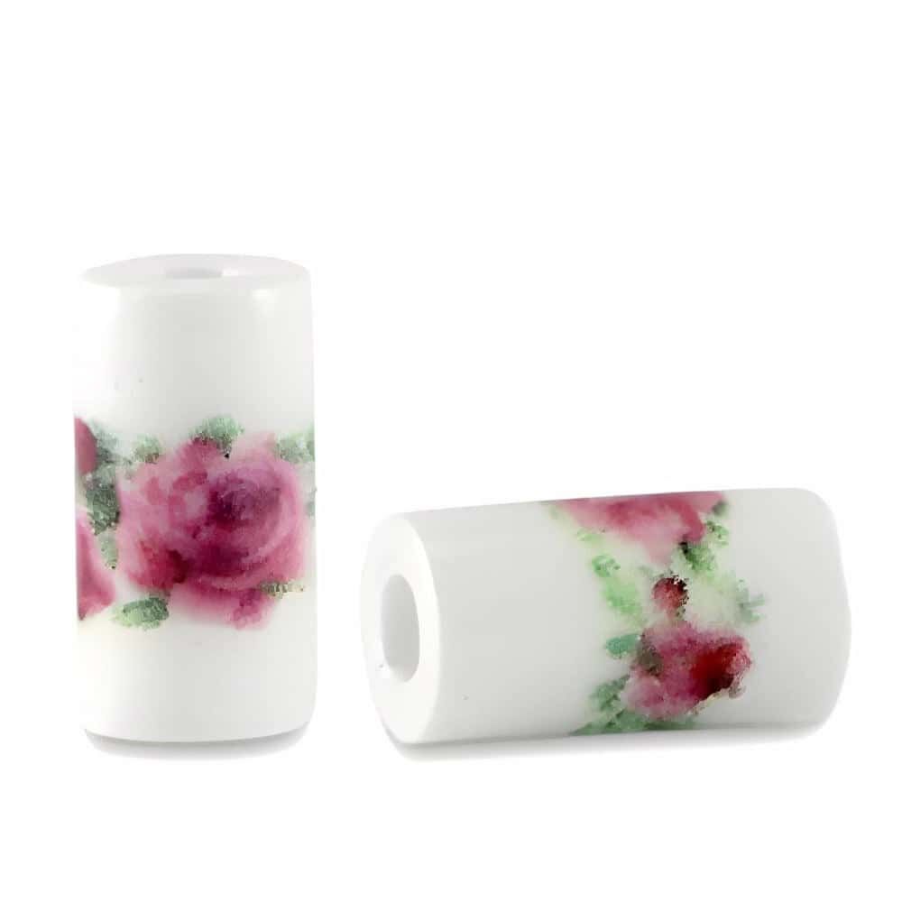 Ceramic Tube Beads – White Berry Pink bring a touch of romantic charm to your jewellery designs. These smooth white ceramic beads feature soft pink berry and floral accents with green detailing, creating a hand-painted, watercolour effect that adds elegance to any piece.