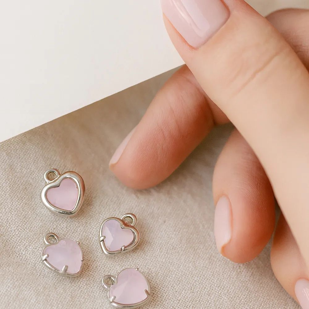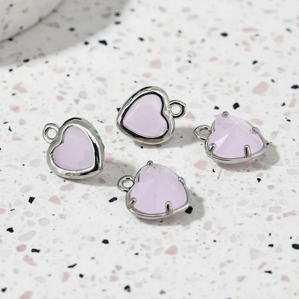 Create adorable, elegant jewellery with this Crystal Glass Heart Charm in Rose Alabaster with a silver-plated setting. Measuring 12mm x 10mm, this versatile charm is perfect for earrings, charm bracelets, or delicate necklaces.