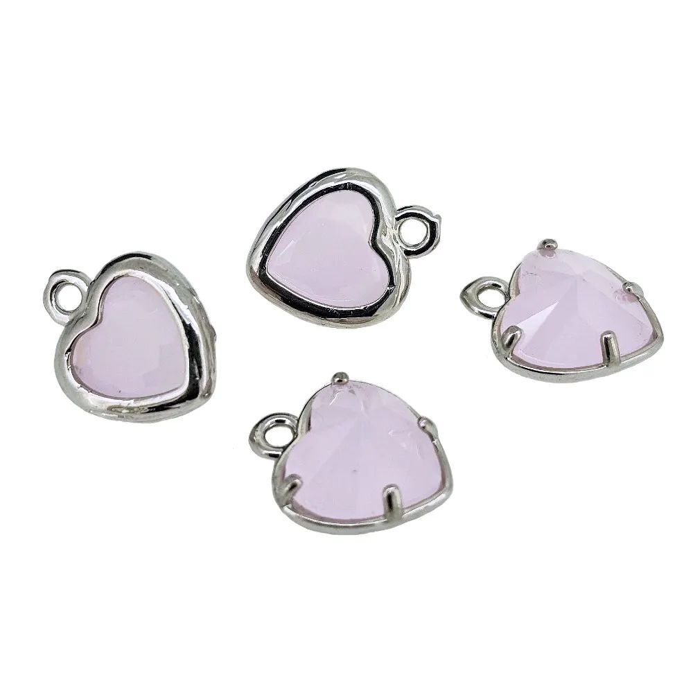 Crystal Glass Heart Charm – Rose Alabaster Silver 12x10mm