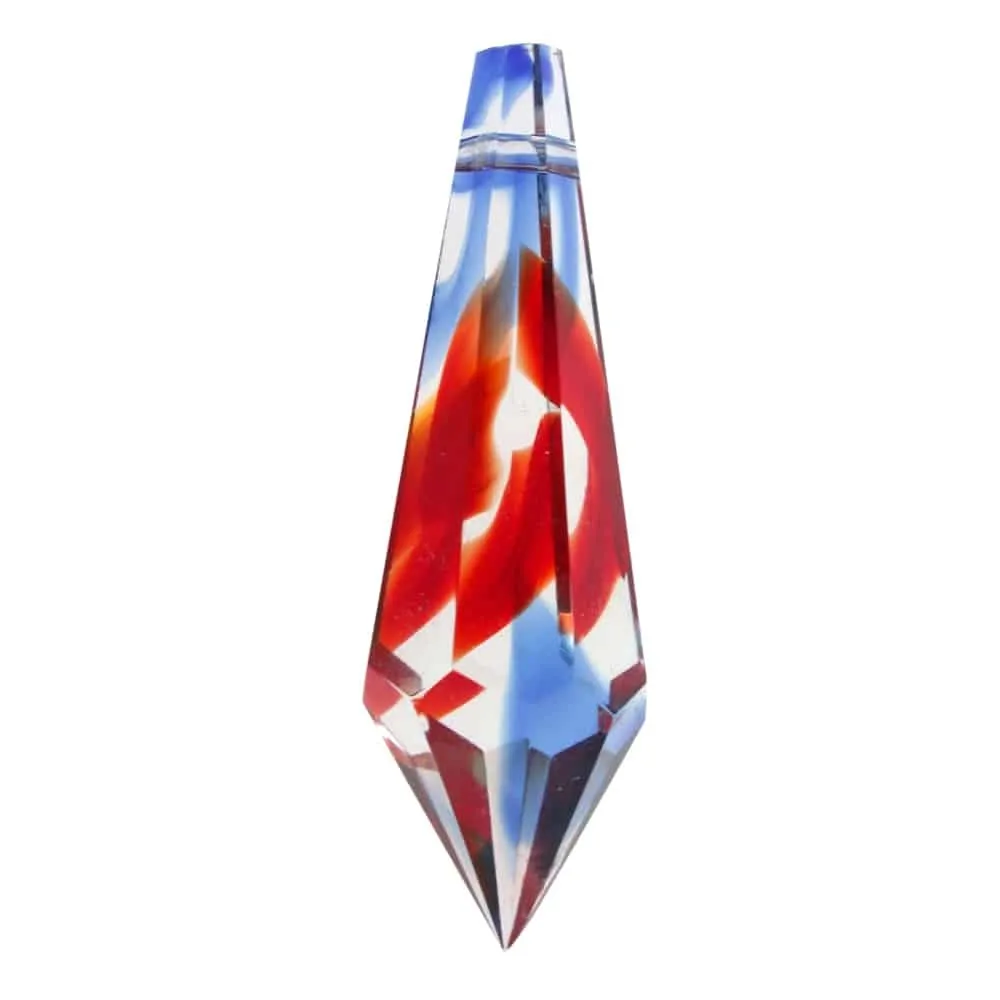 Add a vibrant statement to your designs with this Crystal Point Multicolour Red & Blue. At 38mm, this chandelier-style bead is perfect for crystal suncatchers, sunlit window displays, and decorative crafts. The bold red and blue tones shine beautifully, casting colourful reflections.