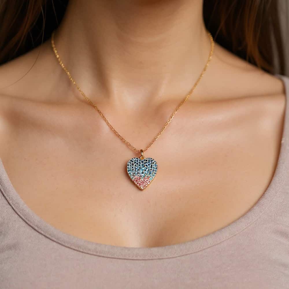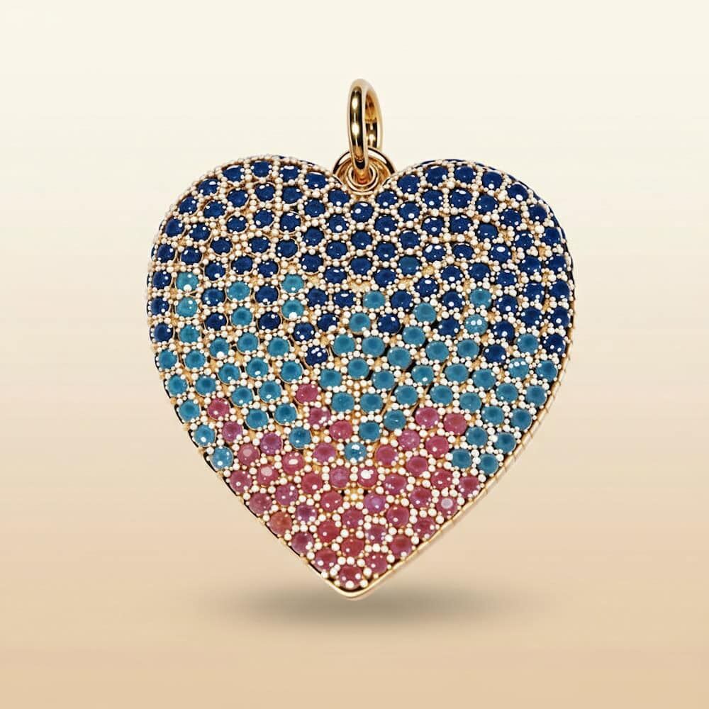 Bring timeless sparkle to your jewellery designs with this elegant gold-plated heart pendant. Encrusted with shimmering blue, aqua, and pink cubic zirconia stones, it catches the light beautifully and makes a stunning centrepiece for any necklace.