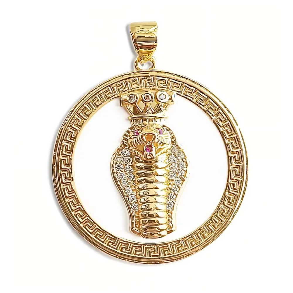 This captivating gold-plated snake pendant has been set in white enamel and then embedded with Cubic Zirconias. The eyes and mouth have tiny pink cubic zirconia crystals. They are unique and one-off, so once they're gone, I'm not able to obtain them anymore.