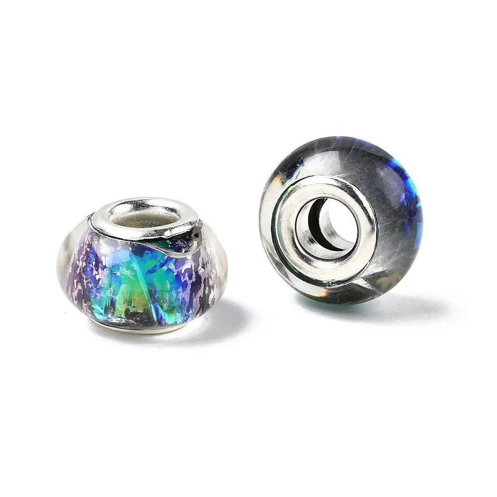 Each bead is crafted from durable resin and finished with double silver colour plated brass cores, giving strength and a polished look. The large 4.5mm hole makes them ideal for charm bracelets, snake chain bracelets, leather cords and European-style jewellery designs.