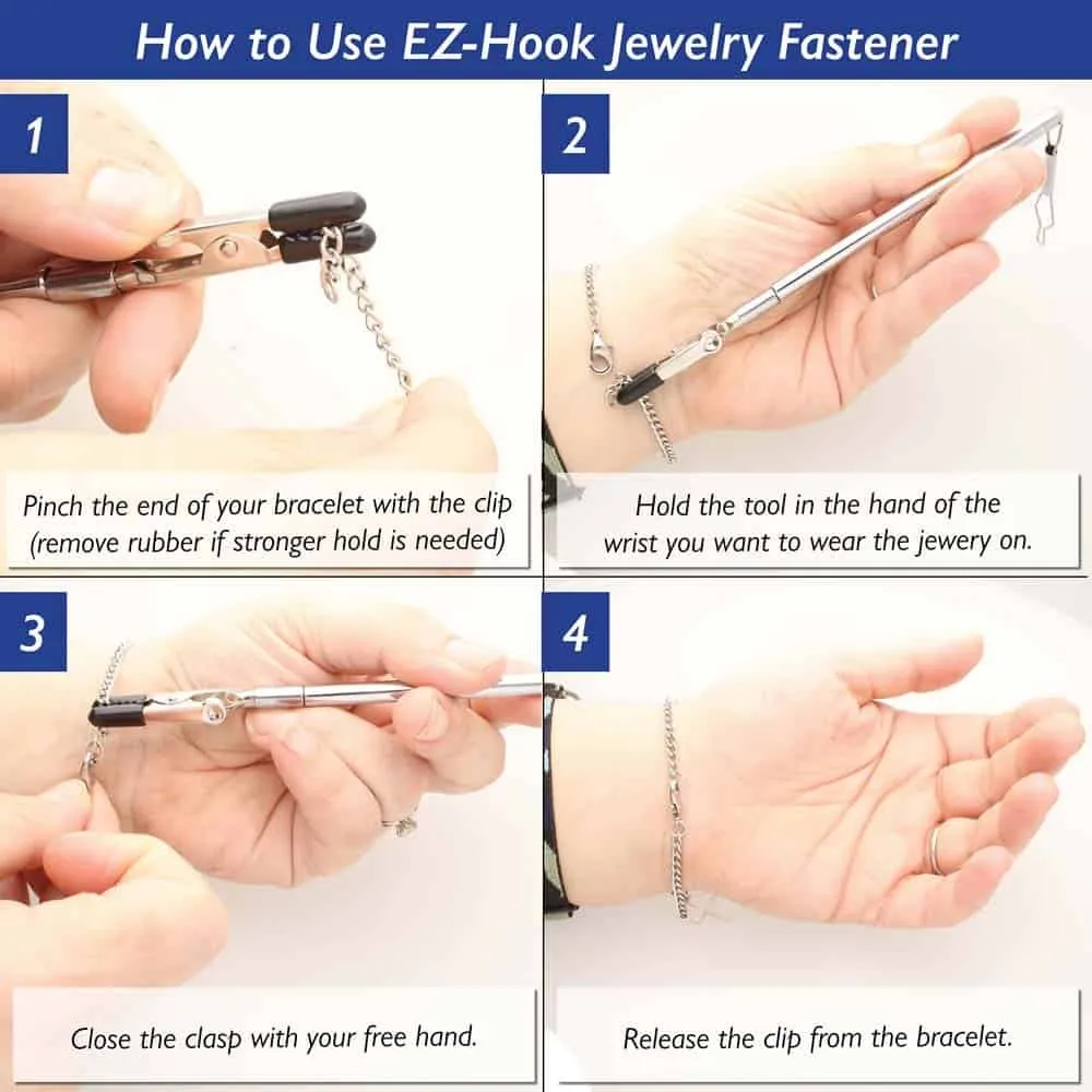 This simple and efficient tool can fasten bracelets, necklaces, zip zippers, and button buttons.