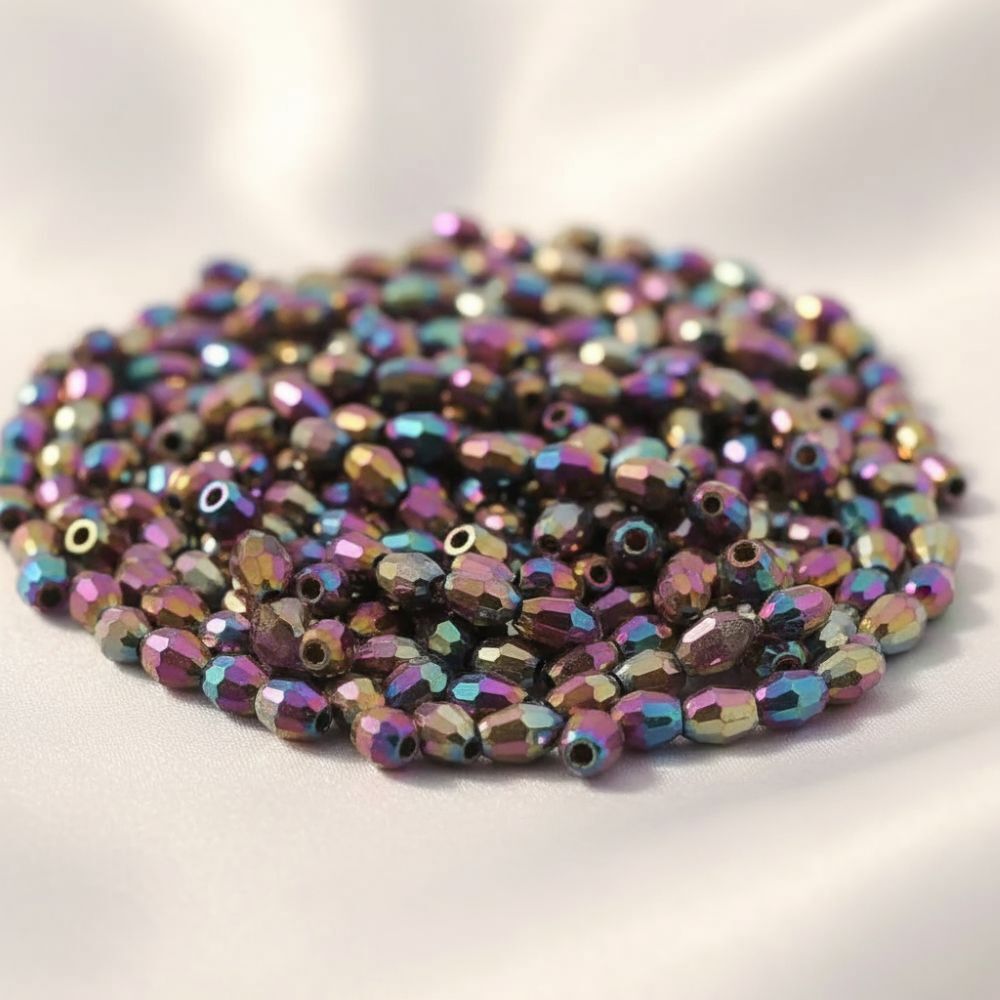 Meet the Electric Dragon Scale Faceted Oval Glass Beads—a pulsating selection for your jewellery designs that die for a bit of drama. These 6mm oval beads have an electric colour palette reflecting light with a scaled, iridescent effect, unlike mythical dragon scales. They have a faceted surface that enhances this brilliant play of colours, making each bead pop with life and energy. Great for designing lovely necklaces, bracelets, and earrings. Your creation will be unique since the beads are an unusual shape and have a brilliant finish. With Electric Dragon Scale Faceted Oval Glass Beads, your design will look magical and mystique
