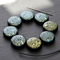 Glass Coin Beads Two Hole - Jet Laser Contour