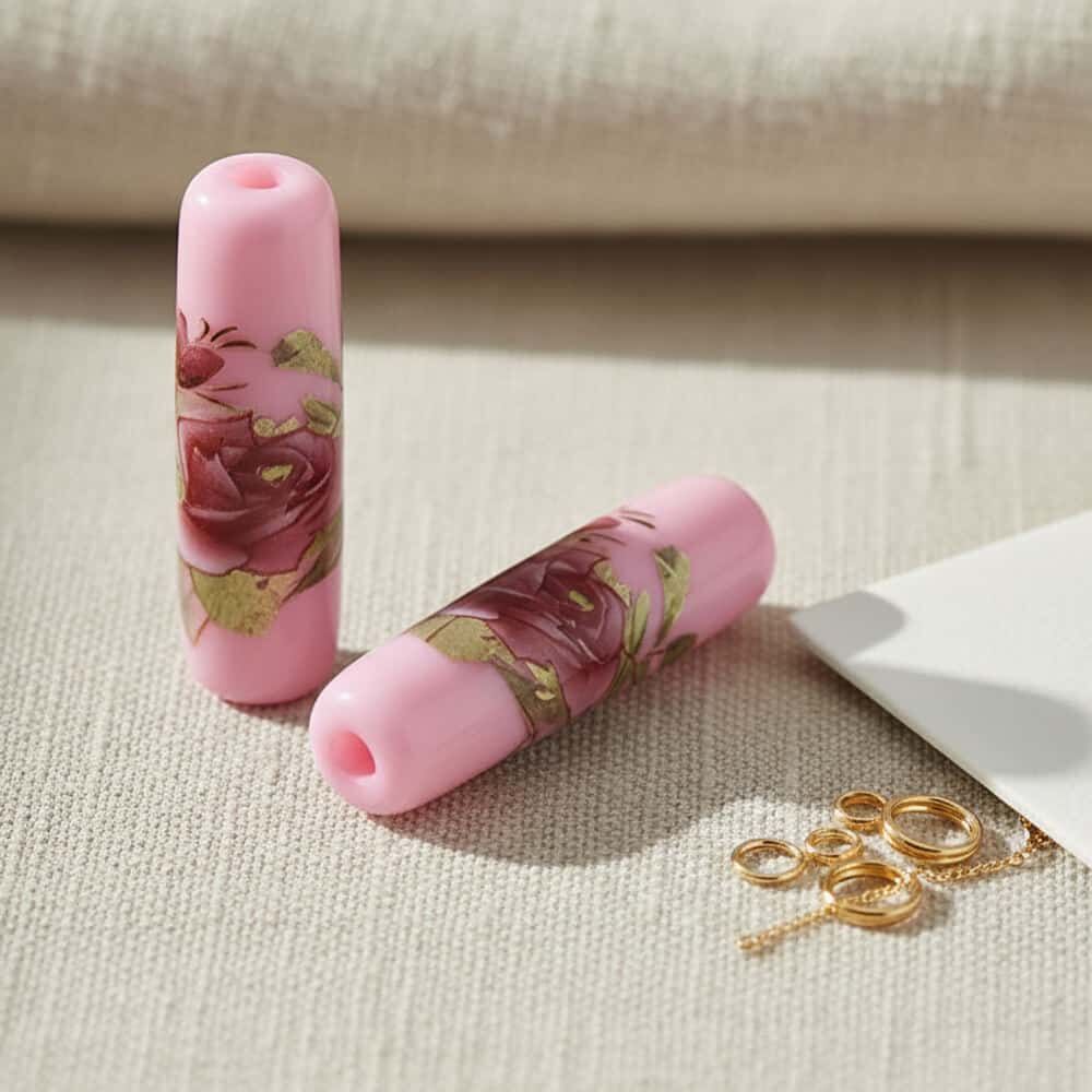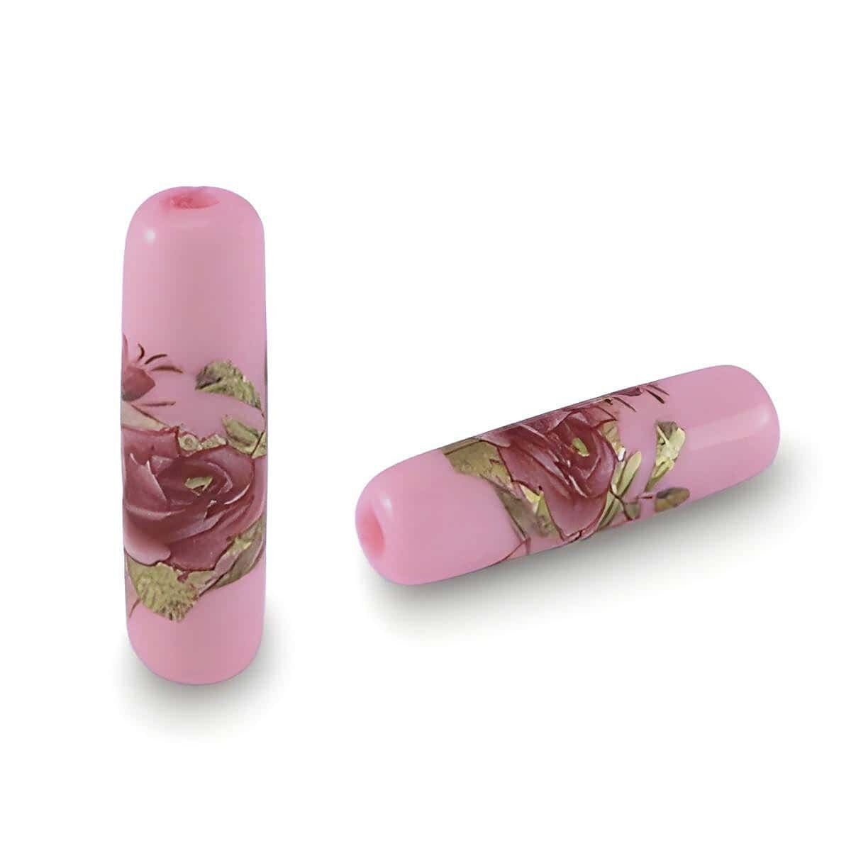 Glass Tube Flower Beads – Pink Rose Red add a touch of vintage charm to your jewellery designs. These beautifully detailed pink glass beads feature a red rose motif with soft gold accents, creating a romantic, feminine look that stands out in any project.