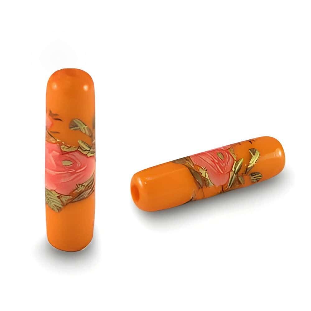 Glass Tube Flower Beads – Sunset Rose Glow bring warmth and vibrancy to your jewellery creations. These orange glass beads feature a delicate pink rose motif with gold highlights, adding a radiant touch to your designs.