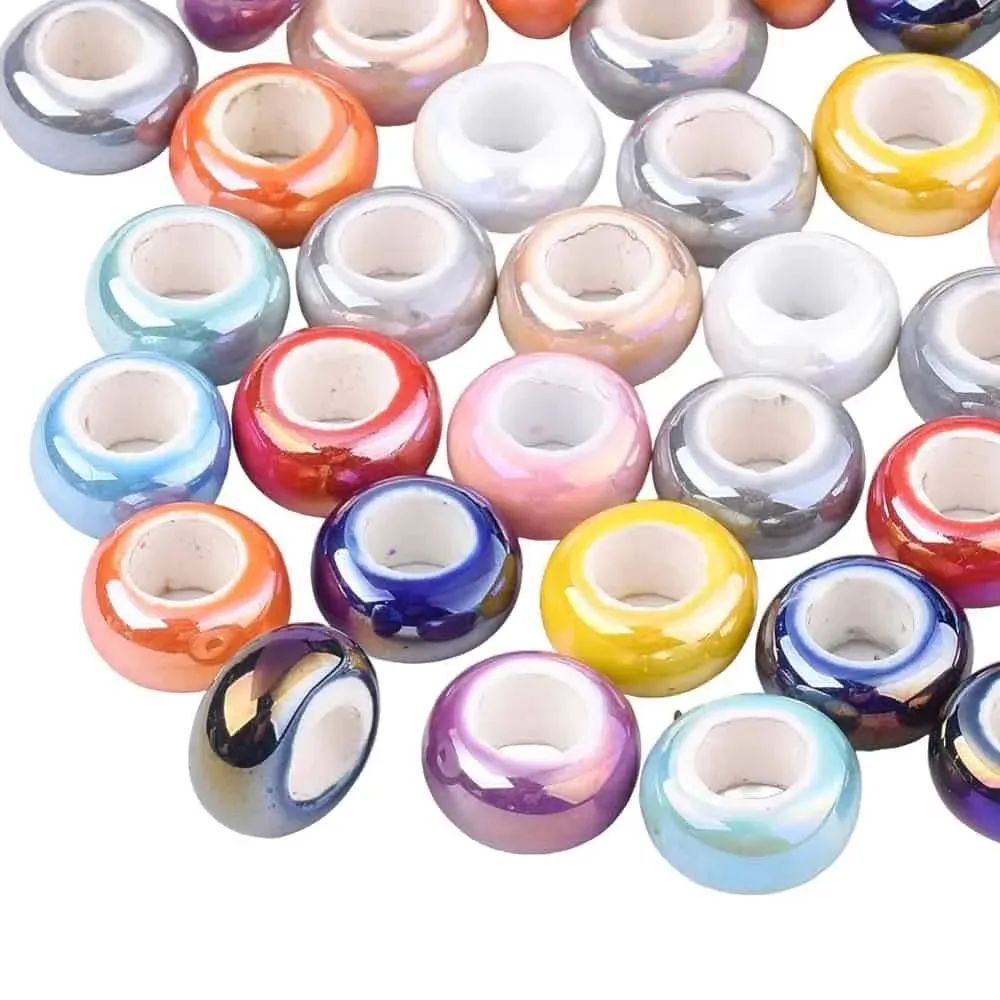 Large Hole Porcelain Beads – Pastel Aurora Mix Rondelle | Pack of 10
