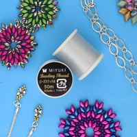 Miyuki Nylon Thread is a pre-waxed beading thread perfect for delicate projects and small-hole beads like seed beads.  This fine yet strong nylon filament is perfect for techniques that require multiple passes through beads. You'll love this tangle and fray-resistant thread, as it's simple to work with and easily threads onto a needle.