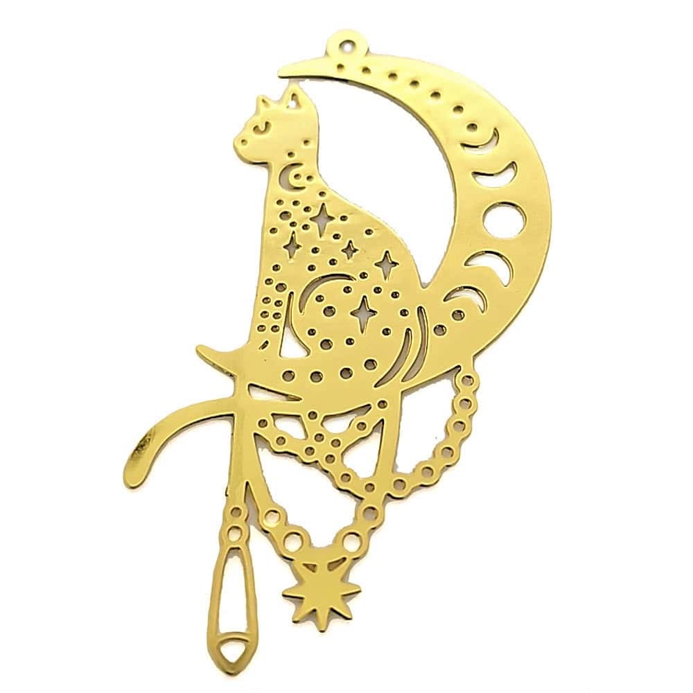 This enchanting charm features a whimsical cat perched on a crescent moon, perfect for adding a mystical touch to suncatchers, scrapbooks, home décor, and other DIY projects.