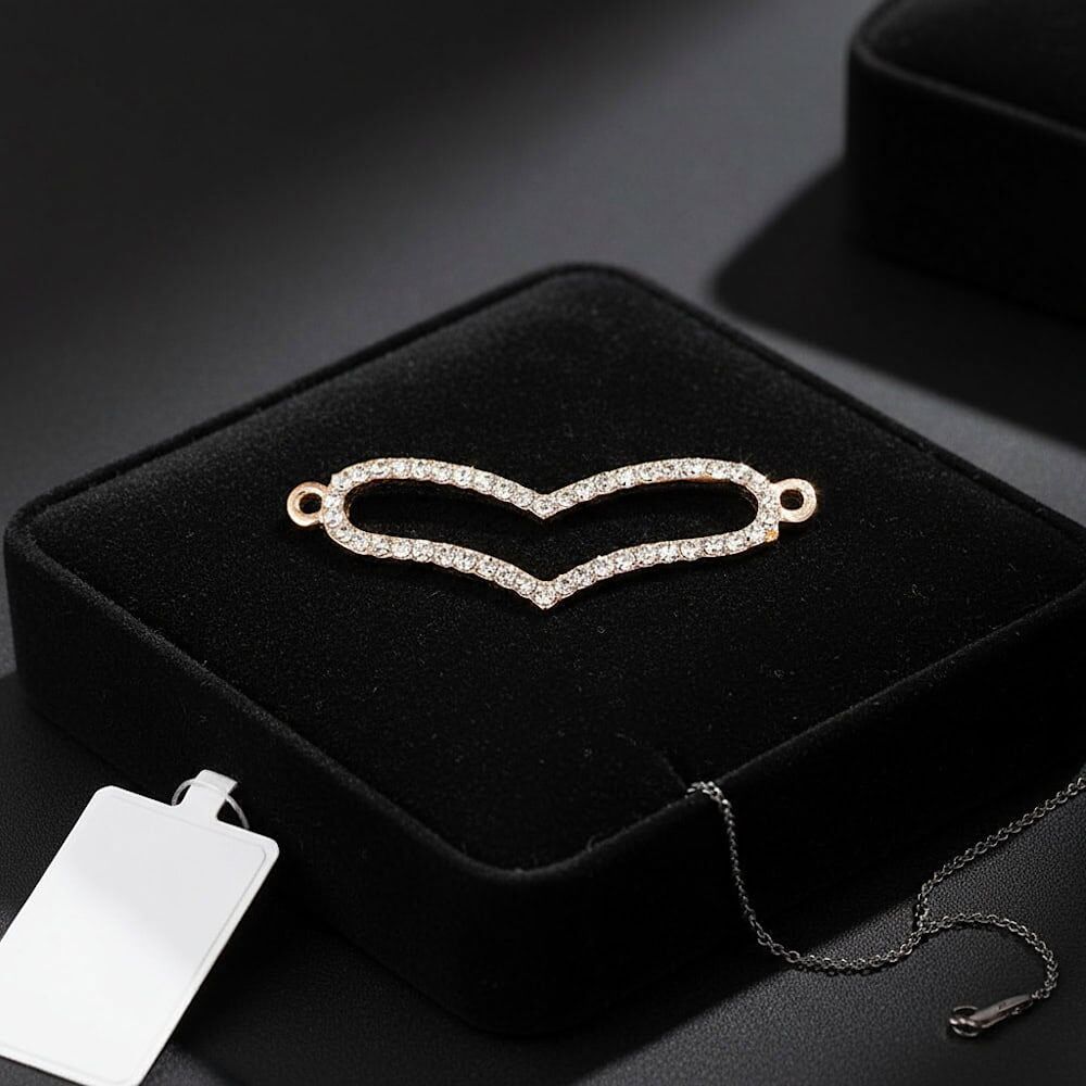 Enhance your creations with the romantic charm and brilliance of this Rose Gold Heart Connector, ideal for adding a sophisticated and sentimental touch to any piece.