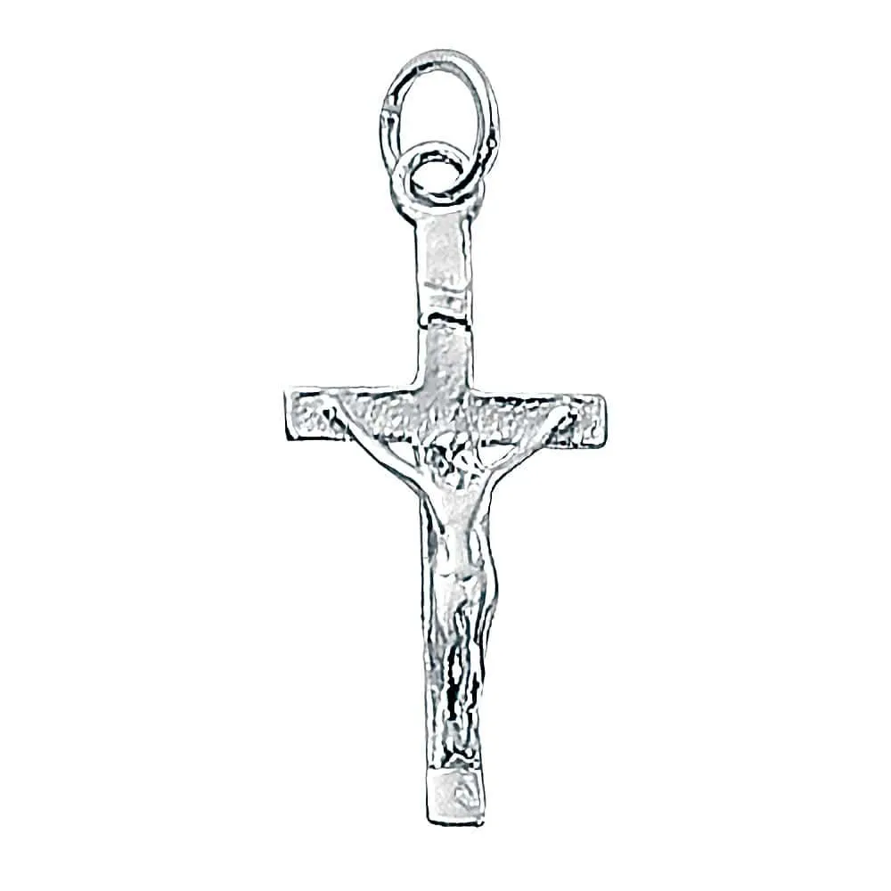 This elegant sterling silver crucifix charm is a timeless symbol of faith, crafted from genuine 925 silver. Featuring a detailed crucifix design and a secure jump ring, it is ready to attach to a necklace, bracelet, or rosary chain.