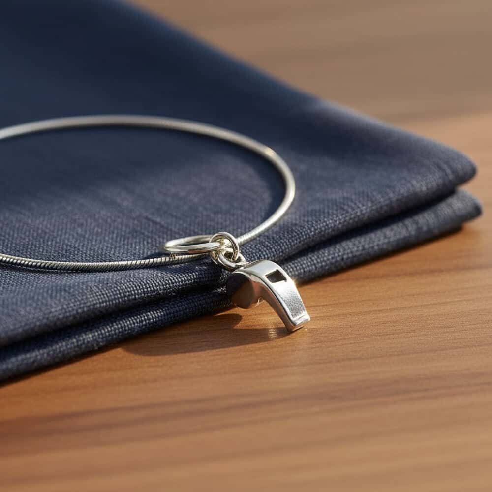 Elevate your jewellery creations with our Sterling Silver Small Refs Whistle Charm. Complete with a handy jump ring, it's perfect for adding a touch of athletic charm to bracelets or necklaces. Make a stylish statement with this finely crafted accessory.