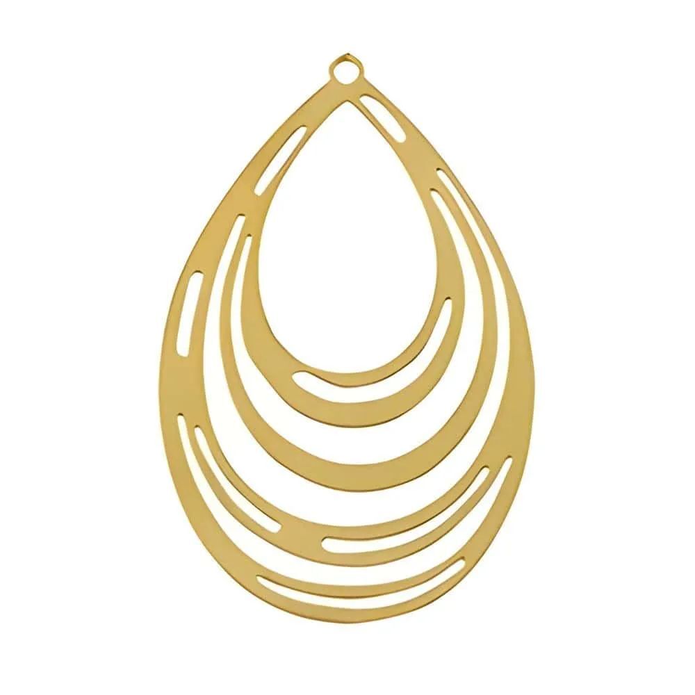 Elevate your jewellery creations with this Gold Stainless Steel Teardrop Chandelier Pendant. Sized at 37x24mm, this elegant drop-shaped charm showcases a layered cut-out pattern for a modern bohemian look.