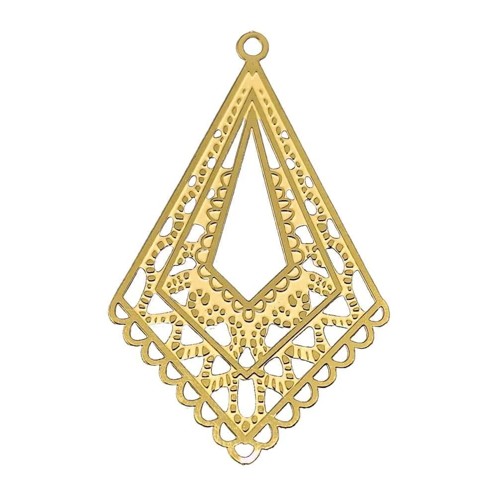 Add bold, bohemian flair to your jewellery designs with this Gold Stainless Steel Triangle Chandelier Pendant. Measuring 48x29mm, this lightweight yet durable charm features intricate cut-out detailing in a geometric triangle design, finished in a rich gold tone.